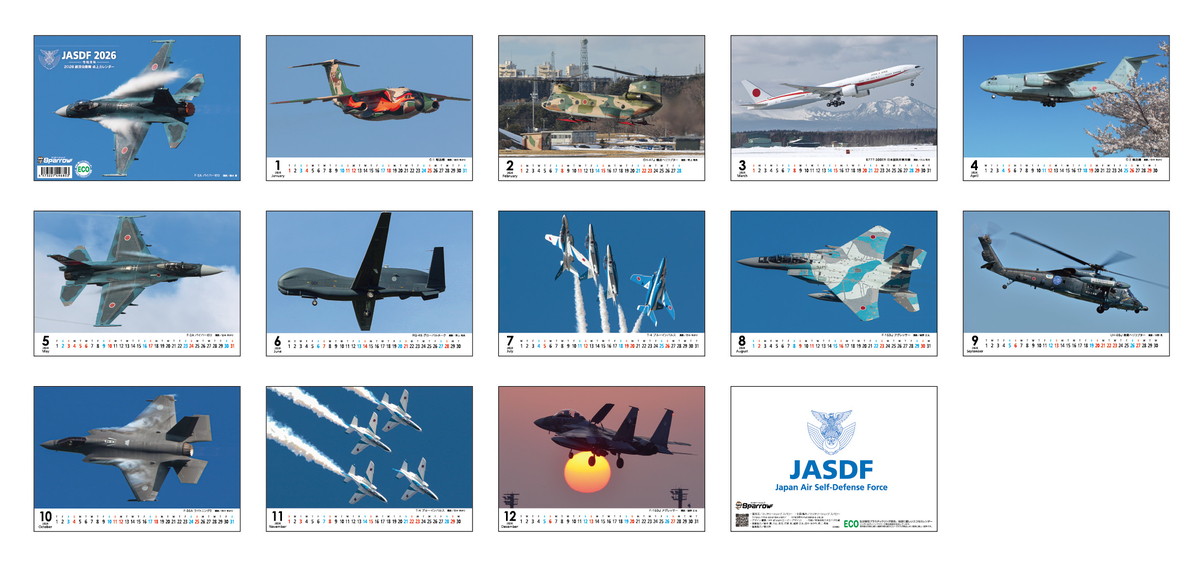 Sparrow 2026航空自衛隊 卓上カレンダー B6判 販売価格 1,500円(税込み) 会員価格 (税込み) 通常価格 (税込み) 在庫 5 商品コード CLD102 JANコード 数量 - + カートに入れる ※在庫確認後、7営業日以内の発送となります ※銀行振込をご希望のお客様へ 無断キャンセルのお客様が多いため、現在銀行振込を停止しております。ご希望のお客様はご連絡ください ※在庫について 在庫状況は常に流動的なため、 ご注文いただいた後に弊社で在庫状況を確認し、あらためてメールをさせていただきます。(注文後の自動返信メールではございません) カテゴリー 卓上カレンダー 便種 クロネコゆうパケット 注文数制限 1 ~ 3 ツイートする シェアする
